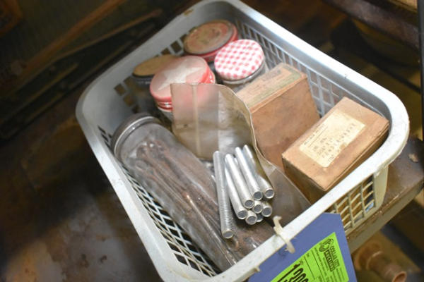 Box lot including cotter pins, small threaded rod, washers