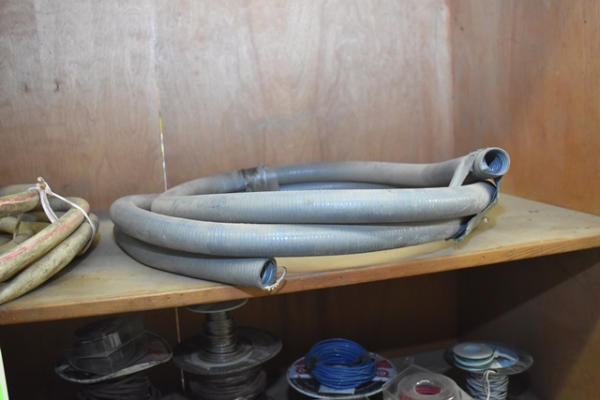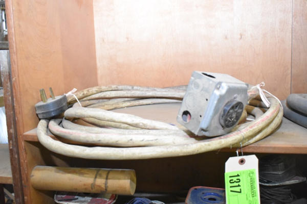 Shelf lot of electrical supplies including 220 lead cord and flexible conduit