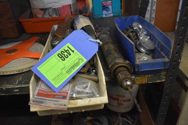 Lot consisting of nuts, bolts, fan belt, pulleys, drill head