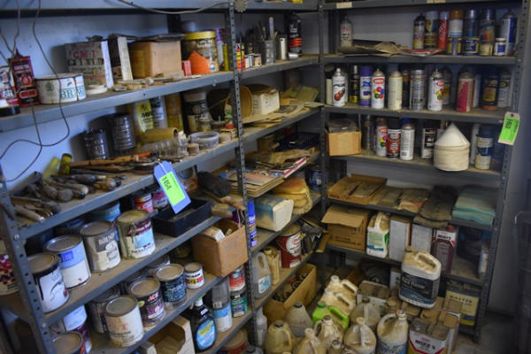 Large lot of finishing supplies, spray paint, etc. (MUST TAKE ALL)