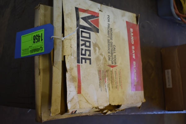 Lot of 3 Morse bandsaw blades, 7' 11 1/2" x 5/8" and 7' 9 1/2" x 1/4"
