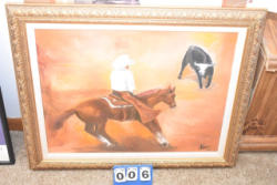 Horse with bull painting, 34" x 28" framed
