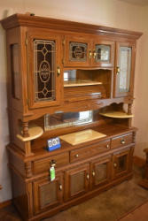 Hutch, 64" x 78" tall x 17" deep, illuminated, roll top desk style center compartment, shelves, marble style small shelves