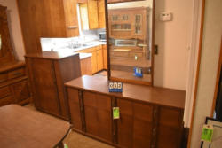 Dresser with chest of drawers, walnut (60" x 18" and 34" x 18" x 42")