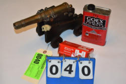 Mowrey Gun Works, TX, twin sisters cannon, makers of fine muzzle loading and gun accessories, very ornate cannon, black powder, also includes black powder and lead balls, includes paperwork