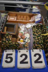 #48 - Box lot of knick knacks including horse and carriages in plastic and ceramic