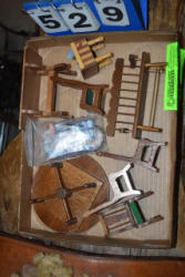 #1534 - Lot of spur straps in a wooden Soapie Ponies box including 8 piece natural color, 2 piece straight natural, 9 pair dark brown.