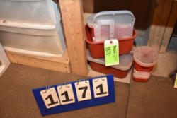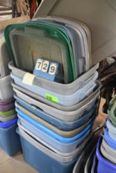 #1500 - Lot of 2 totes consisting of assorted equine care and products and bandages
