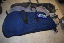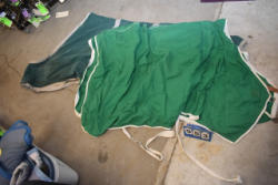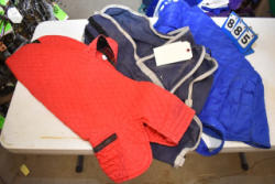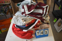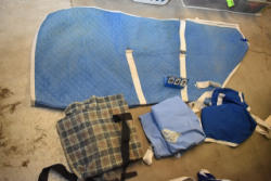 Full box of misc. used leg wraps and saddle quilts