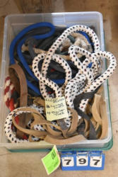 Box lot of assorted straps, blanket repair pieces