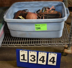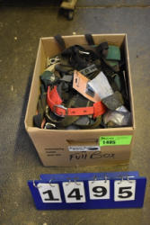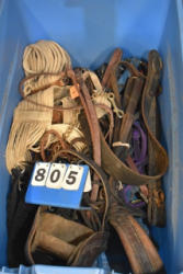 #1495 - Box lot of assorted straps, blanket repair pieces