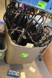 #1510 - Box lot of stirrups, tapaderos, weight gaming and aluminum stirrups