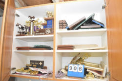 #9 - Hutch, 64" x 78" tall x 17" deep, illuminated, roll top desk style center compartment, shelves, marble style small shelves