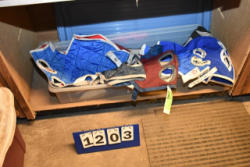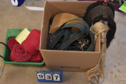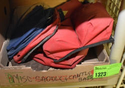 #1494 - Full box of misc. used leg wraps and saddle quilts