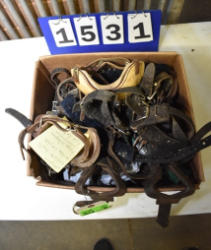 #1509 - Box of buddy stirrups, back strap