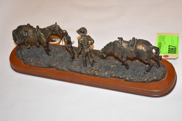 Montana Silversmith "Between Friends" statue on wood, 20" wide