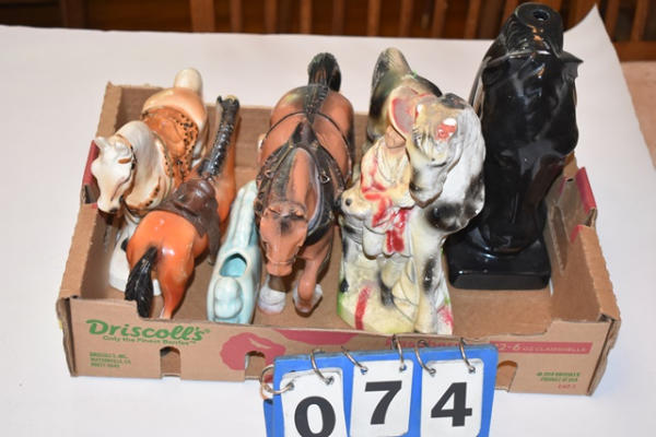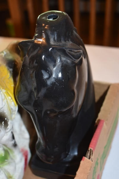 Lot of ceramic and plastic horses, including vintage chalkware