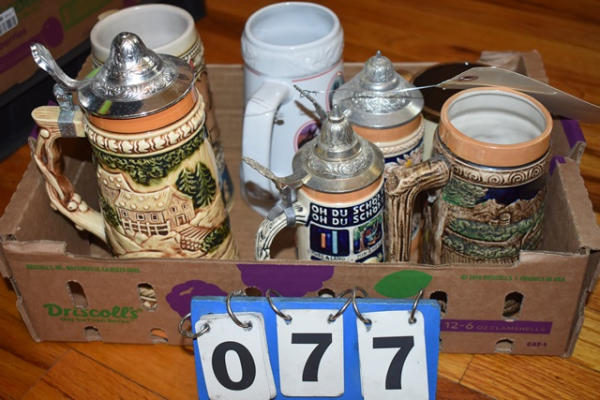 Lot of steins, marked Made in Japan, Made in Germany, very ornate steins