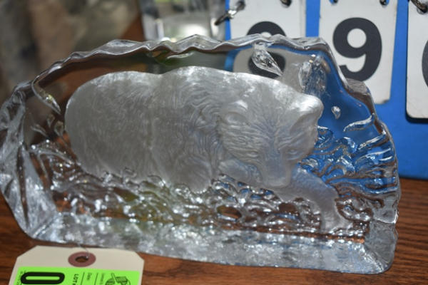 Lot including illuminated 3D horse decoration and a glass bear decoration