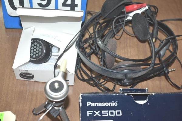 Lot of assorted digital cameras, charger, head set, small tripod, etc.