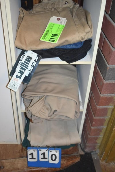 Lot of clothing including women's showmanship pants (XL 17/18), riding jeans, 2 pairs size 29, 3 pairs size 24 (new with tags)