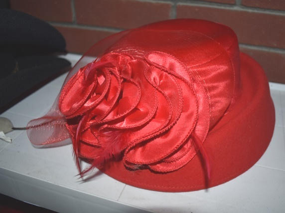 Shelf lot of 3 hats, 1 is size 6 7/8, 1 is a lady's dress hat