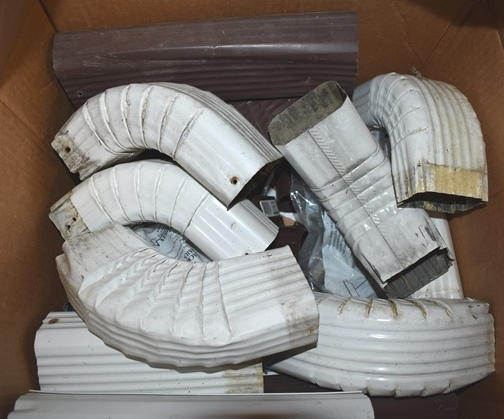 Shelf lot including Fernco, sink traps, gutter parts, etc.