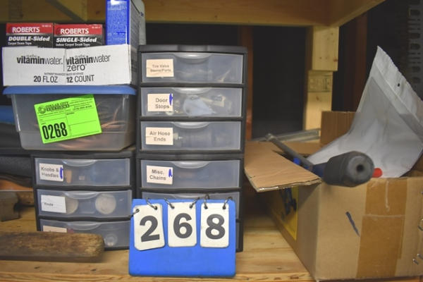 Remainder of shelf lot including pipe wrap, threshold, knobs and handles