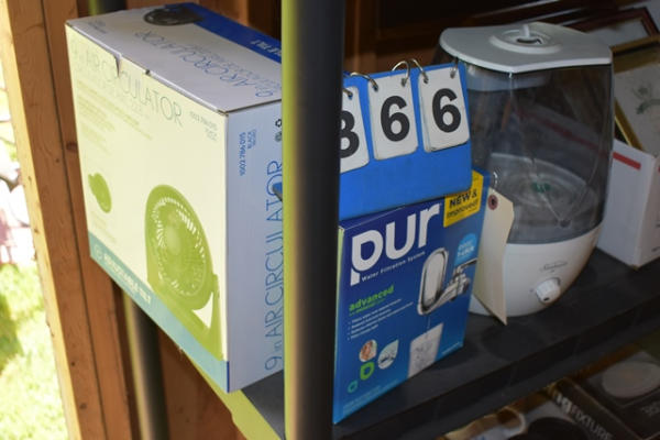 Lot consisting of a 9" fan, water filtration system, etc.