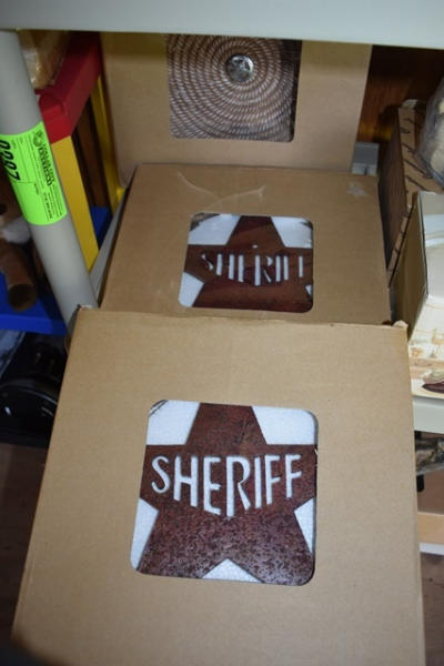 Lot includes 2 sheriff's stars and decorative wall hangings