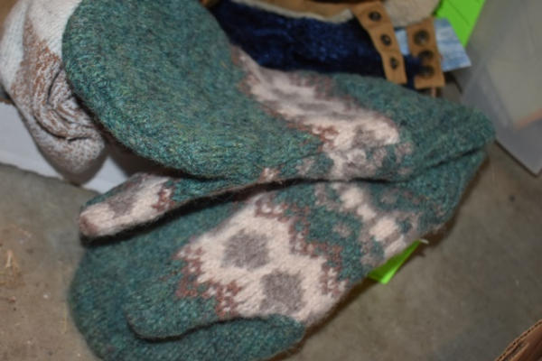 Lot consisting of handmade wool mittens, new gloves and ear flap hat