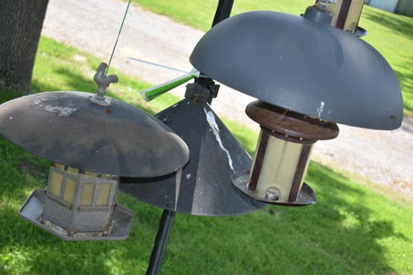Large assortment of bird feeders
