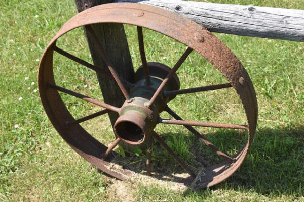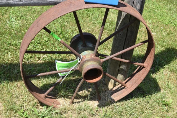 Lot of 2 metal spoked wagon wheels