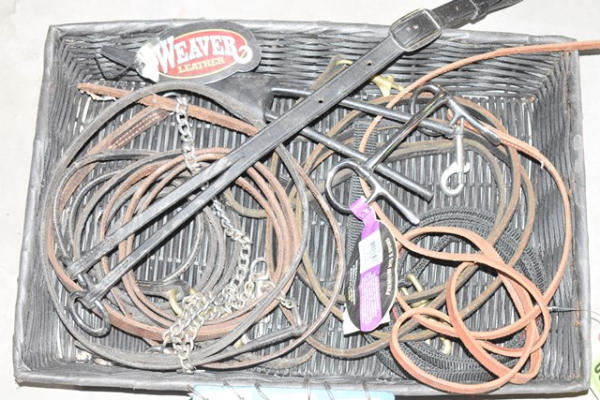 Lot consisting of 2 mini leather chain leads, 3 leather snap leads, 1 binder bender replacement and 3 1/2" bit