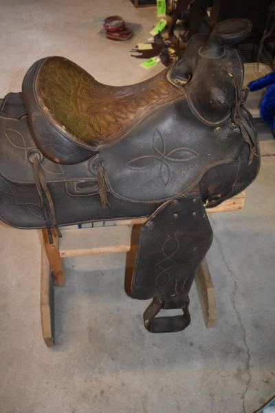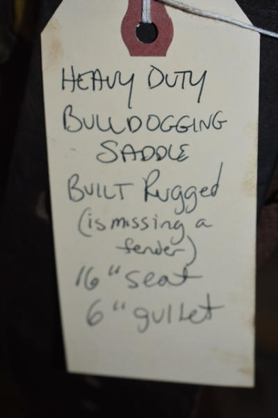 Heavy duty bulldogging saddle, built rugged, missing a fender, 16" seat, 6" gullet