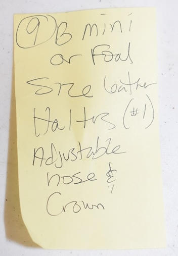 Lot of 9 B mini or foal size leather halters, size 1, adjustable nose and crown