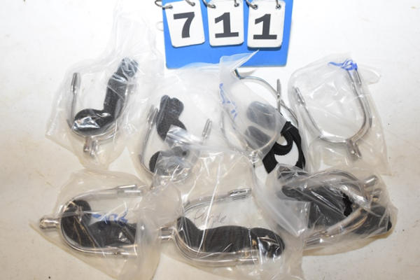 Lot of 7 pairs of purple rhinestone inlay English spurs with straps