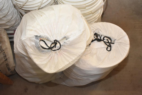 Large lot of various size plastic buckets and bags of lids