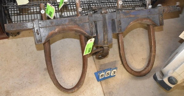 Oxen yoke, 52" with adjustable neck yoke, wood and iron fittings