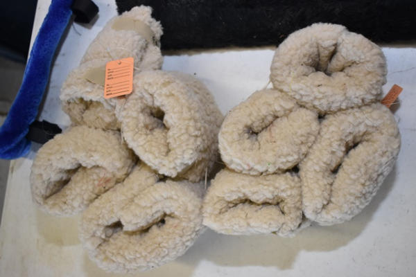 Mini breast collar pad, 2 back pads, 4 black mini leads, 2 pair of mini fleece shipping boots, 2 buck hanger cross ties