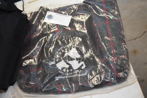 Lot consisting of all new items including mini high neck fleece cooler, medium neck sweat mini, 2 new fly masks, 2 mini girths, 2 grooming bags
