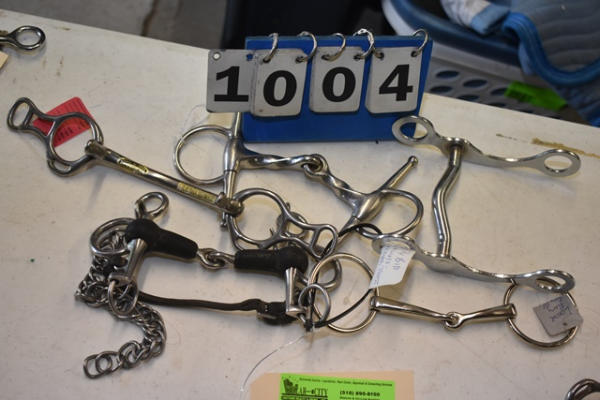Lot of 5 4 1/4" pony bits including Crescendo and twisted bridle bit and a pelham bit