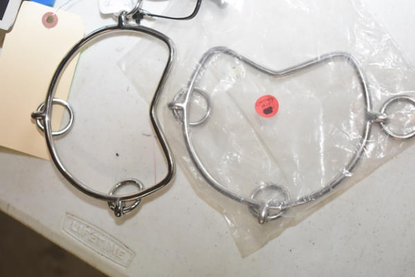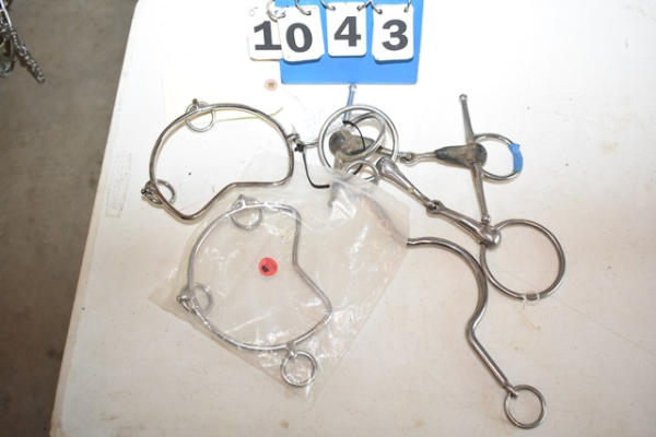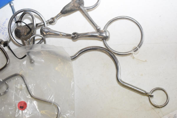 Lot of 5 5" bits including a 5" race horse bit, 2 new Chiffneys, a full cheek snaffle and an O-ring snaffle