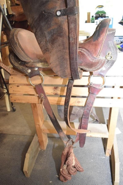 Pegasso, Hecho en Columbia, 13" front to back, seat 18" when measured English style (measured button to back), high back seat, trim saddle, no horn, open gullet area, with double rigging, matching fenders and leather stirrups