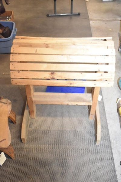 Wooden saddle stand, barrel type design on top for western saddles, 28" high x 22" x 23"