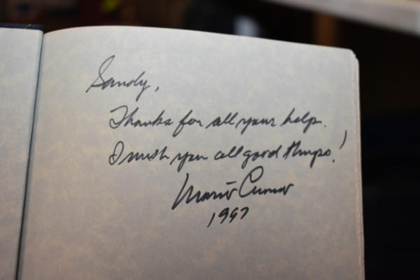 Lot of 2 books by Mario Cuomo and a bookmarker, both books are signed by Mario Cuomo at the time of her Governorship