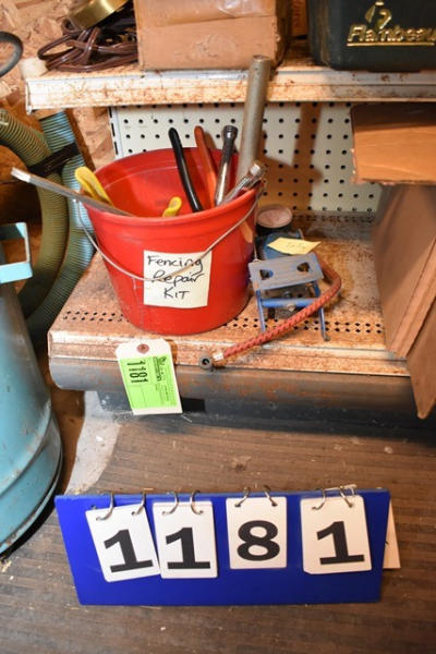 Tire pump and some fencing repair items including hole punch, fence tighteners, fence cutters, ratchet tools
