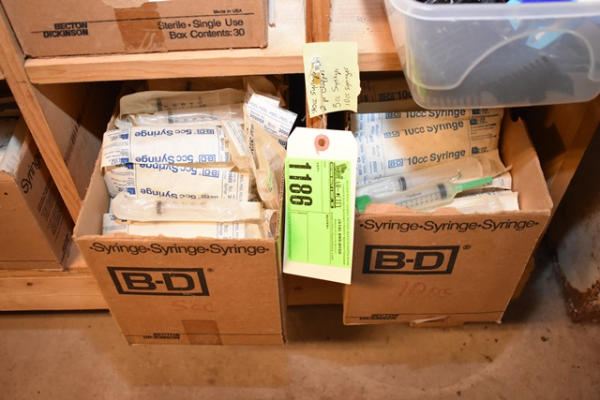 Lot of 30cc syringes, 2 pair of clippers, 5cc and 10cc syringes