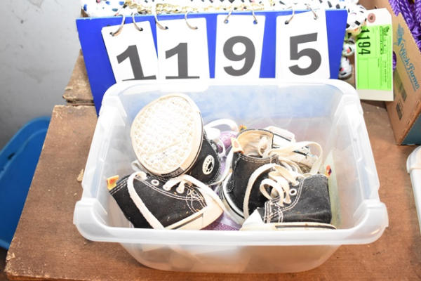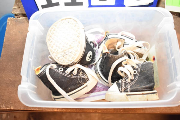 Lot of 2 pair of purple sparkle sneakers and 2 pair of Converse black sneakers and 1 pair of rubber pad from Build-a-Bear workshops for miniature horses that either founder or are in parades and you want them to stay off the concrete and slippery floors