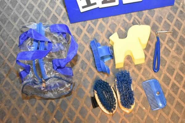 Lot of 6 Grooming kits that include little kid size curry comb, sponges, hand brushes, hoof pick and a carry case
